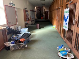 Ground Floor Entrance hall with access to a disabled WC, two staircases and a lift to the first floor, a second main hallway, further male and female WC's, the main hall, kitchen and office / room.
