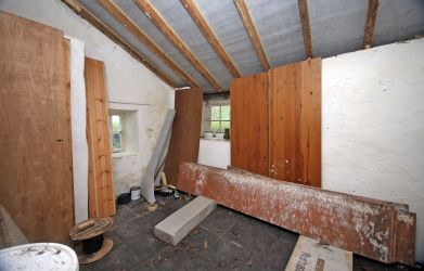 Approached via a long narrow track the accommodation briefly consists of a generous size lounge, complete with a beamed ceiling and an impressive inglenook fireplace made from local stone and slate. Off the Lounge is a Kitchen area and a separate Dining area further along. On the opposite side, through a useful storage room, is a good size Bedroom/Office. Upstairs are 2 more Bedrooms, with the larger room featuring exposed stone walls and roof beams. Completing the accommodation is a part tiled Bathroom with a white bath suite. Outside in front of the property is a large garden area with an off road parking space.