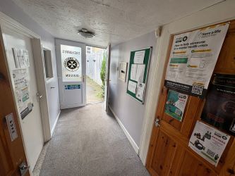 Outside: Double gated yard with external pathway leading to the side of the main hall.