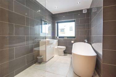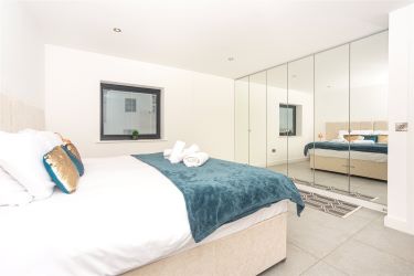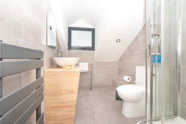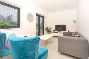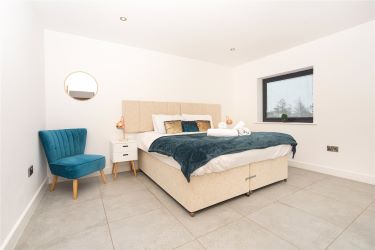 The property is presented to a high standard throughout, featuring a spacious open-plan living area with contemporary kitchen, quartz worktops, and bi-fold doors that maximise light and views. The ground floor also benefits from underfloor heating, a snug, double bedroom, modern bathroom, and utility room. To the first floor are two further well-proportioned bedrooms and a stylish shower room.