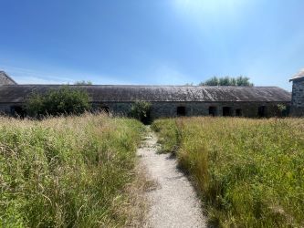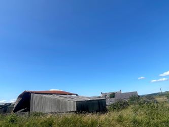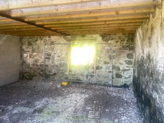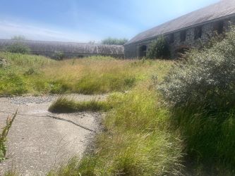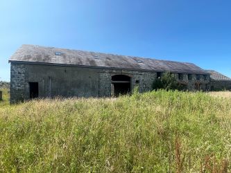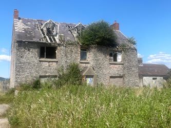 A dilapidated stone built farmhouse (not inspected) and a series of stone built Grade II listed barns, with surrounding land and further substantial sheet metal profile built store/barn in poor repair. The barns having residential planning consent for conversion to 5 individual dwellings, comprising of 3 x 2 bedrooms and 2 x 3 bedrooms. We understand that planning was granted in 2006, and initial works have begun on site, making the development live. Some additional barns within the farm have been sold off separately.