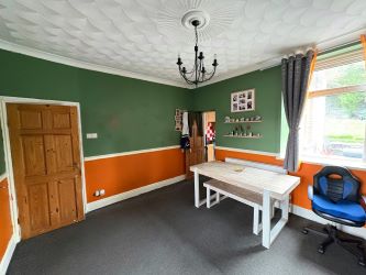 Ground Floor Entrance hall, two reception rooms, kitchen and family bathroom.